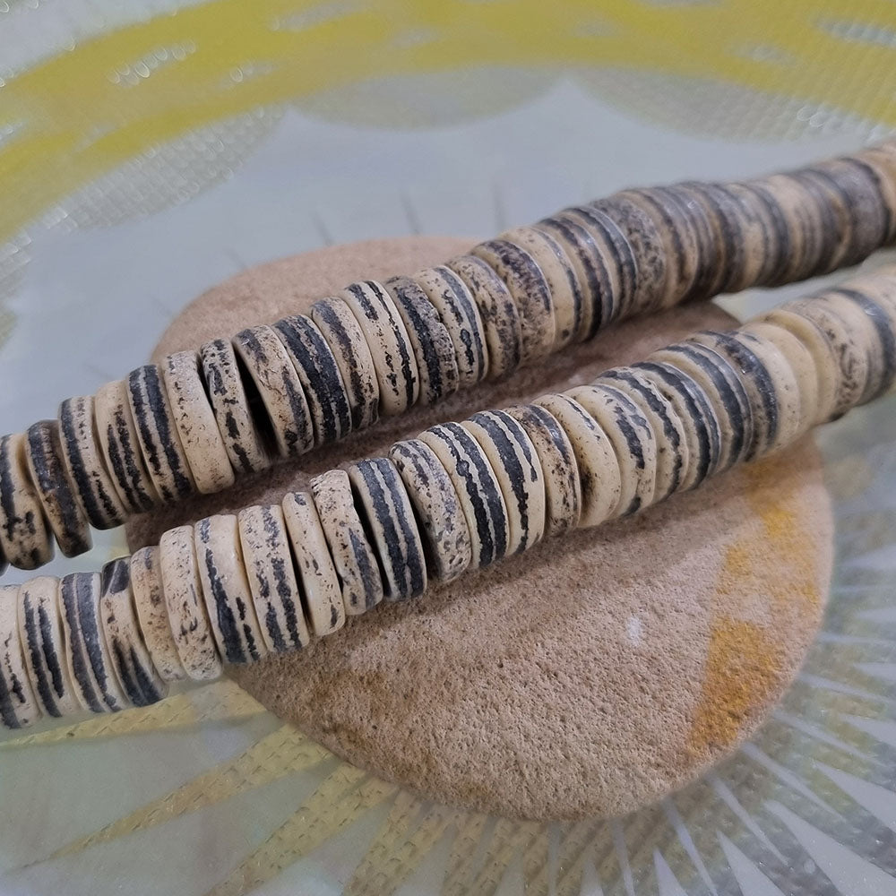 Big size 14x4mm, Heishi Shape, Handmade Natural Bone Beads Plain finish natural dyed Antiqued