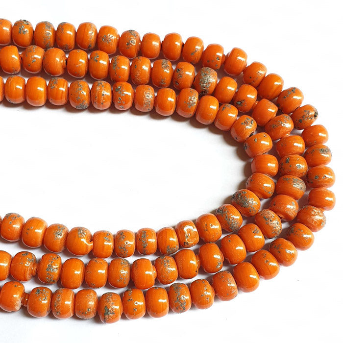 10 Strands/Line 9X7mm Orange Tyre black dots ethnic India Nepal Trade Glass Beads Sold Per Strand of 16" About beads 64