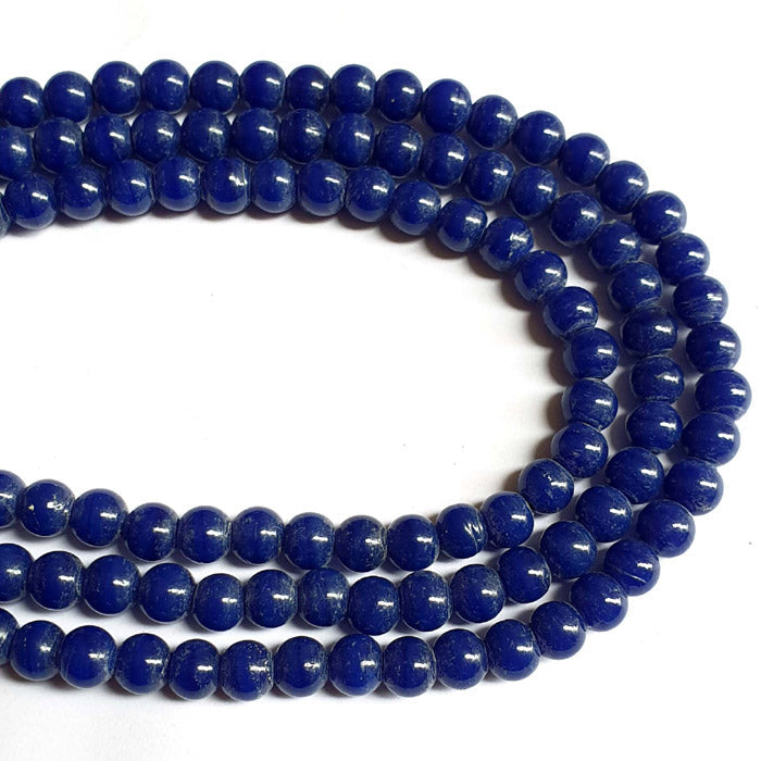 10 Strands/Line 7mm Round Lapiz Blue color Nepal India Traditional Glass Beads Sold Per Line/Strand of 16" Approx Beads 60